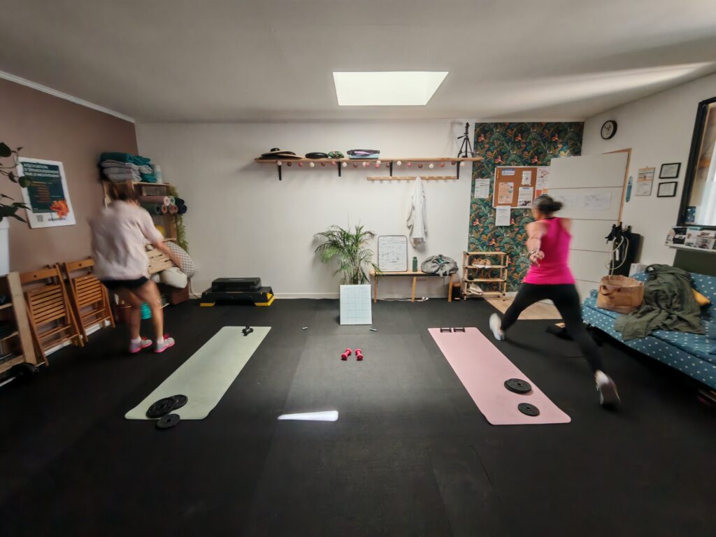 Un enchaînement d’ateliers variés (renfo, cardio, coordination) à son rythme.